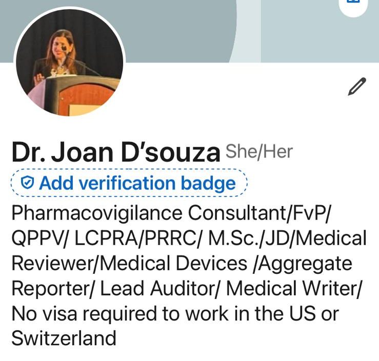 Dr. Joan D’souza is a senior pharmacovigilance and regulatory affairs professional with extensive global experience across the US and Europe. Currently serving as Fachtechnisch verantwortliche Person (FvP) (Responsible Person), Local Qualified Person for Pharmacovigilance (LQPPV) and Regulatory Affairs (LCPRA) in Switzerland, Germany, and Liechtenstein—as well as Deputy LCPPV in the UK and Ireland and Pharmacovigilance Physician—she oversees comprehensive safety surveillance and regulatory compliance across the entire product lifecycle, from market release decision to submission.